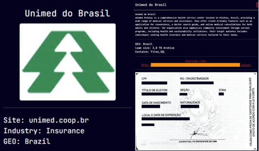 Axur's research and investigation team, Axur Research Team, confirmed this week the publication of 2.8 terabytes of data attributed to Brazilian healthcare Unimed RS on dark web forums, in an episode claimed by the Sarcoma ransomware group.