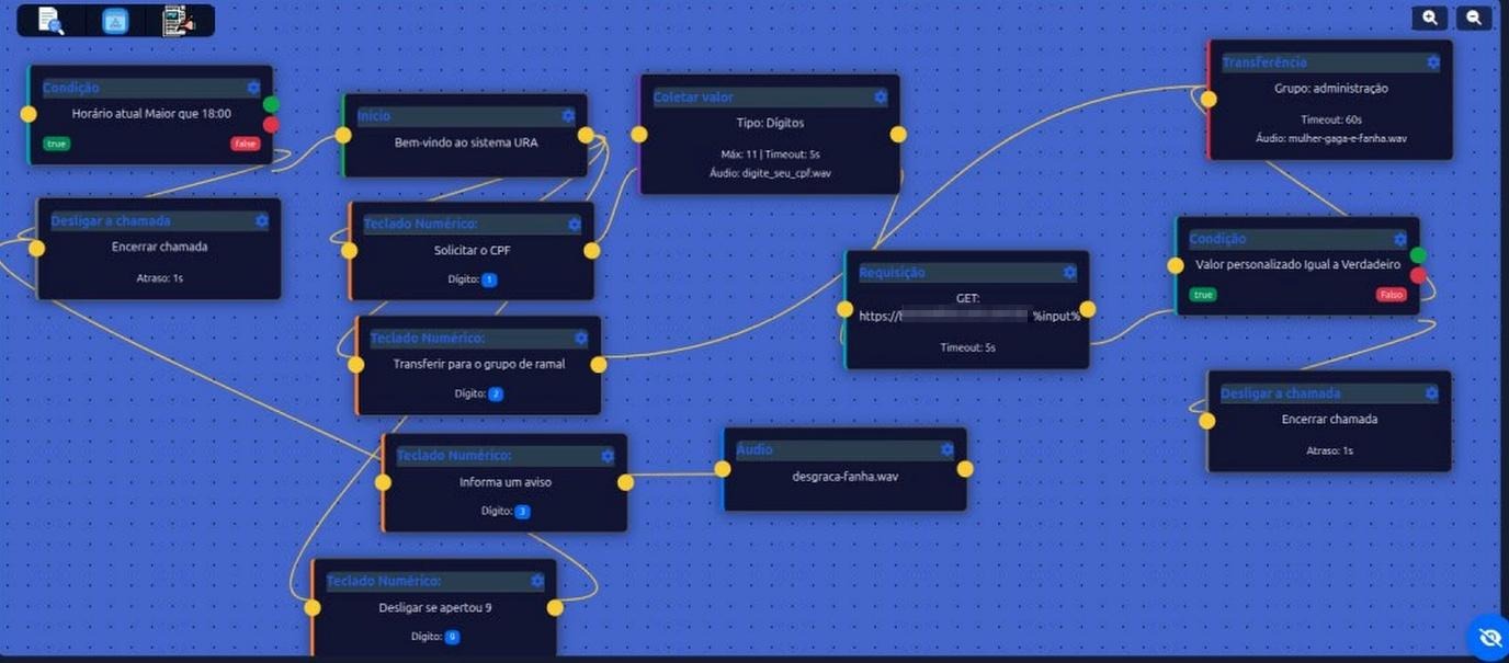 Fluxo de atendimento programado na URA para realizar fraude de forma autônoma.